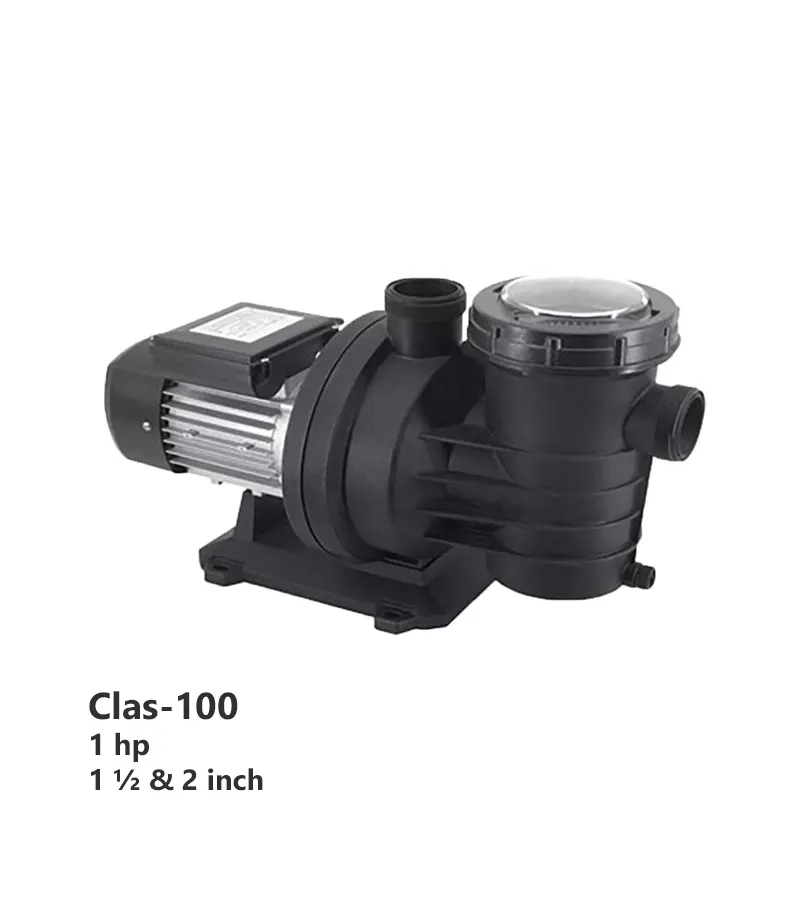پمپ تصفیه استخر کالمو سری کلاس مدل Clas-100 از توان 1 اسب بخار و حداکثر دبی 20.4 متر مکعب بر ساعت بهره میبرد.